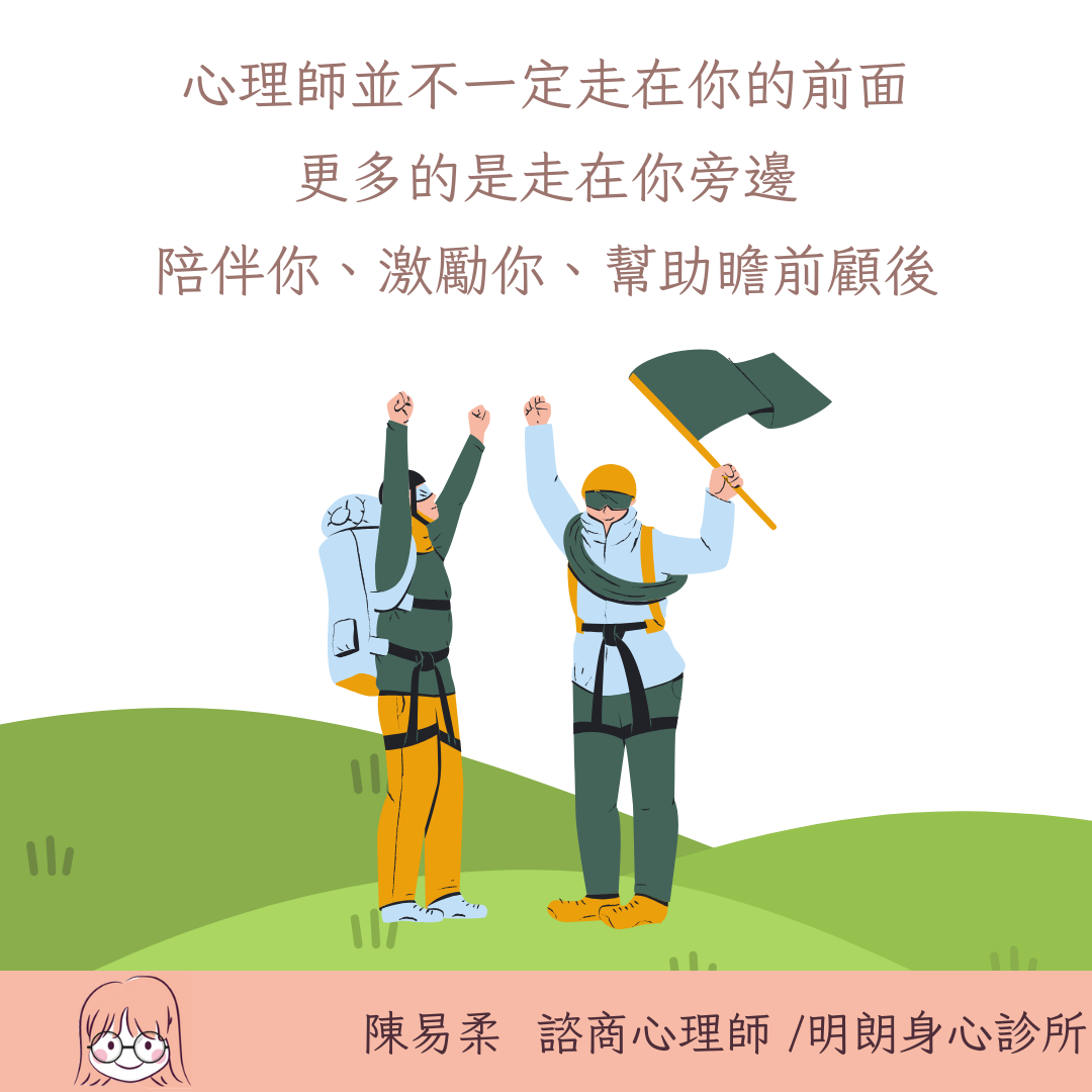 心理師更多的是走在你旁邊 陪伴你、激勵你、幫助你瞻前顧後 因為你才是你人生的專家 你才是你人生的主人翁