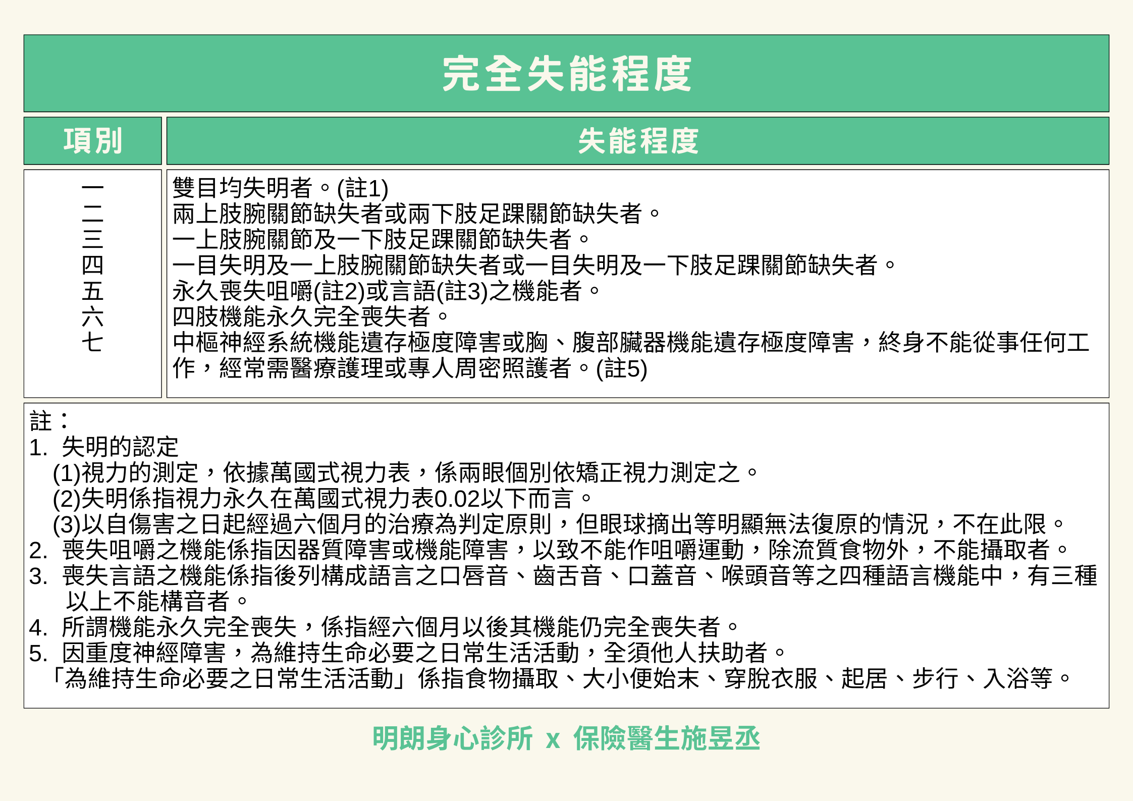 →延伸閱讀:【保險江湖一點訣:神經失能等級評估-論工作能力與生活自理能力】