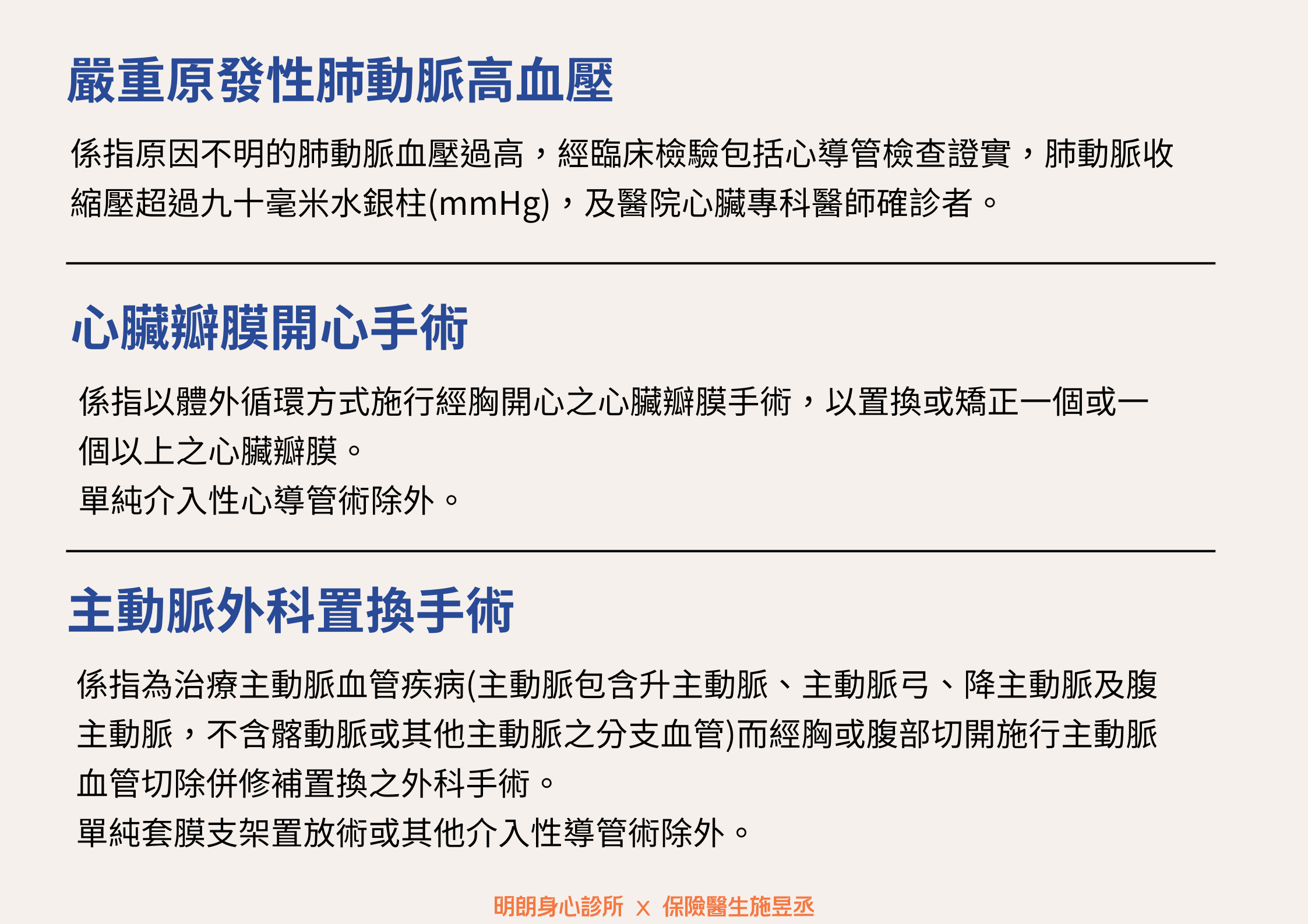 跟重大傷病/疾病險的理賠定義不同,並且手術定義是排除介入性心導管術的。
